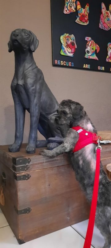 Dama is een ongelooflijk lief hondenmeiske met een maatschappelijke socialisatie achterstand. Ze is geboren in december 2021 en ondanks haar jeugdige leeftijd heeft zij al pups gedragen, gebaard en gezoogd. De warmtelamp hing te laag waardoor de vacht en haar huid schade opliepen. Ze is daarvan herstellende. En weet u, dat is niet haar grootste zorg. Ze heeft haar inprentingsfase zonder de juiste sociale contacten doorstaan en moet nog veel positieve ervaringen opdoen om dat allemaal in te kunnen halen, die wijsheid te kunnen vergaren. We zijn ervan overtuigd dat het goed komt met haar want ze heeft het voordeel van de jeugd, plus dat twinkeltje in haar ogen. Op vrijdag 11 november staat haar sterilisatie ingepland.