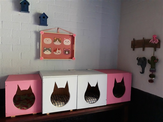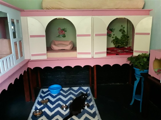 Naar een ontwerp van Nathaly werd een kattenunit gerealiseerd in bedstee en stal style. De meer dan geweldige kattenunit werd gesponsord door Mar van stichting Vossenhol en daarvoor onze onuitsprekelijke dank! Hij is zo geweldig geworden!