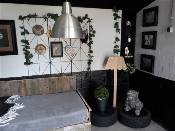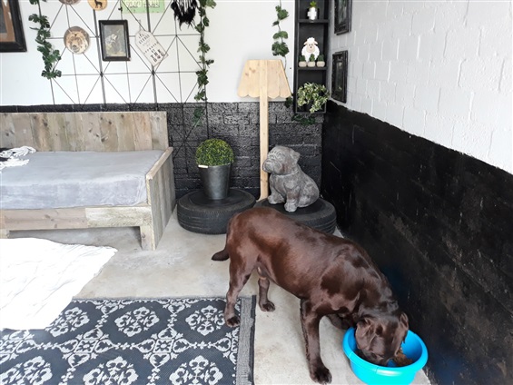 Als tweede thema ‘Café de Bulldog’ werd een hondenunit opgeleukt. Eduard, de buitenshuisbaas van Els doneerde 250 euro voor deze creatieve uitspatting. Bruine Labrador Niek is op dit moment de trotse bewoner. De diavoorstelling hieronder geeft een impressie van de unit weer…