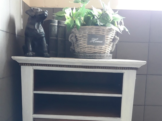 Scot en Diva delen als echtpaar een hondenunit. De aankleding daarvan moet doordacht gebeuren. We hebben grote moeite om Diva zindelijk te krijgen, ze heeft dan ook jarenlang in haar eigen uitwerpselen geleefd en ze vreet huisraad! Toch willen we het ook voor hen graag gezellig maken maar daarbij moeten we wel de ‘poetsbaarheid’ in het oog houden. Voor hun unit hebben we eigenlijk alles hergebruikt vanwege de soms oncontroleerbare slooplust van Diva. Omdat we sponsoren hadden voor een aantal andere units konden we de aldaar overgebleven huisraad oplappen en er toch nog één gezellig geheel van maken. Het kastje in de hoek is echter een nieuwe aanwinst, het werd geschonken door Sandra en haar hond Bimmel. We branden een (nep)kaarsje dat onze Diva daar niet haar tanden inzet…